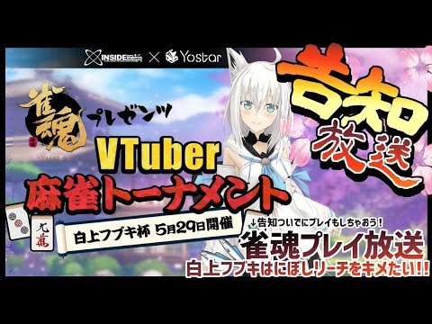 ホロライブ所属のバーチャル狐!白上フブキです。 この度雀魂にて行われるVTuber麻雀トーナメント白上フブキ杯についての 告知をさせていただきます!!! バーチャル最強の雀士は誰なんじゃい! ■雀...